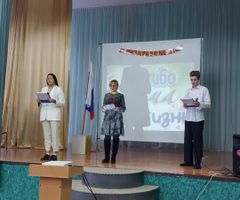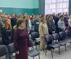 На линейке отмечены победительница областного фестиваля Шаброва Елизавета, стипендиат Законодательного Собрания Челябинской области Собин Иван.