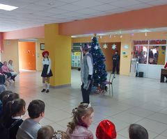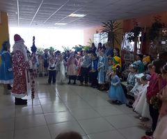 Во время представления дети танцевали вокруг нарядной елки, играли в игры с Дедом Морозом, Снегурочкой и помощниками. Малыши рассказывали Деду Морозу новогодние стихи и получали за это сладкие призы.