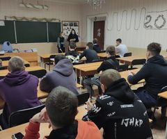 В этот день в техникуме прошли пятиминутки в группах, где студенты группы ЭБ-101 рассказывали о Герое, в коридоре был размещен стенд о Кукарине И.А.